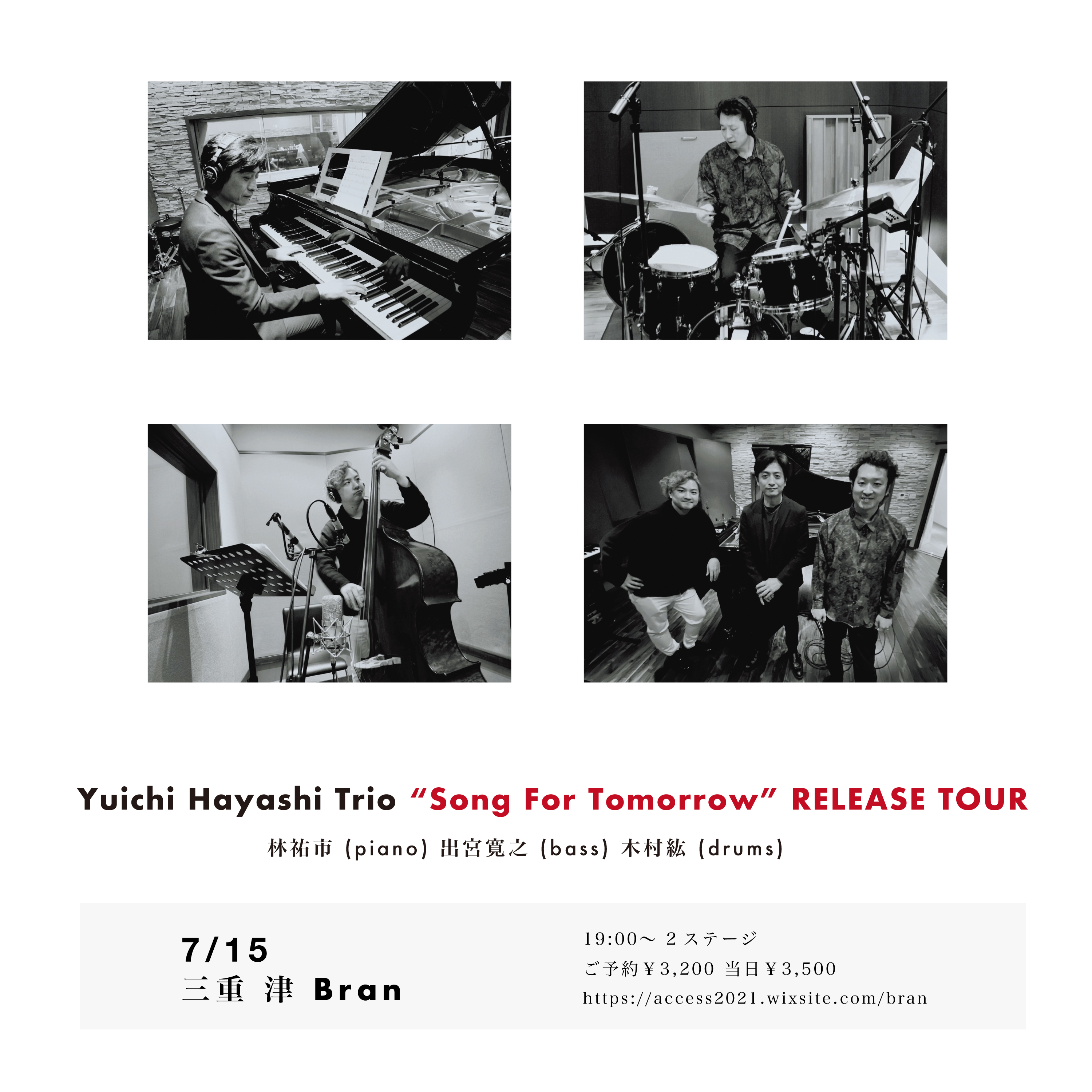 7/15土曜日は林祐市トリオアルバム発売ツアーで三重県津市のBranに初出演です😊